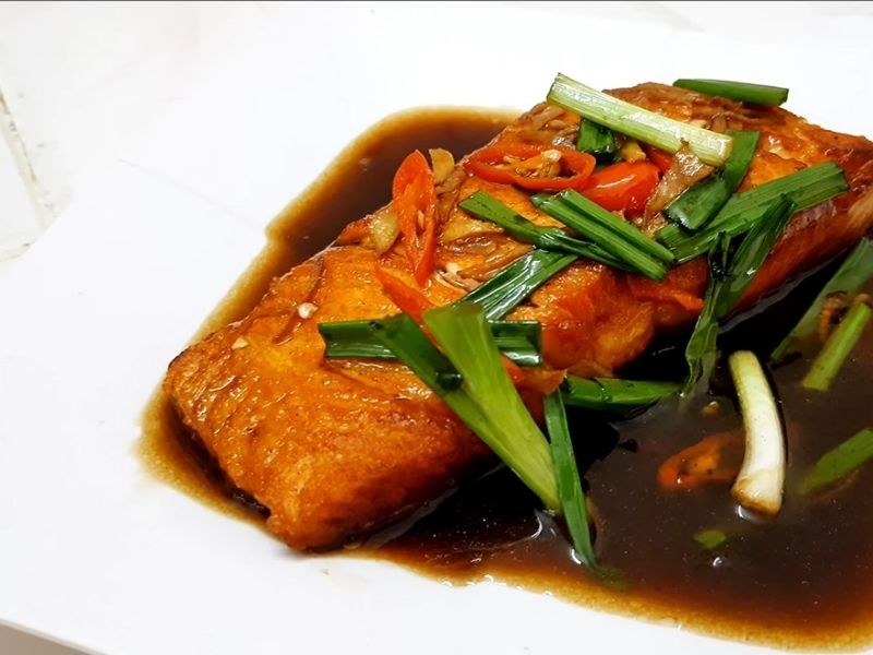 Cách làm món cá hồi áp chảo sốt xì dầu