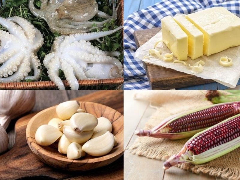 Các nguyên liệu làm bạch tuộc nướng bơ: