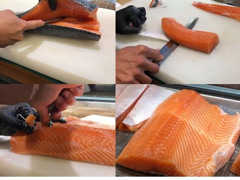 Để chế biến sashimi cá hồi ta cần làm theo các bước sau đây: