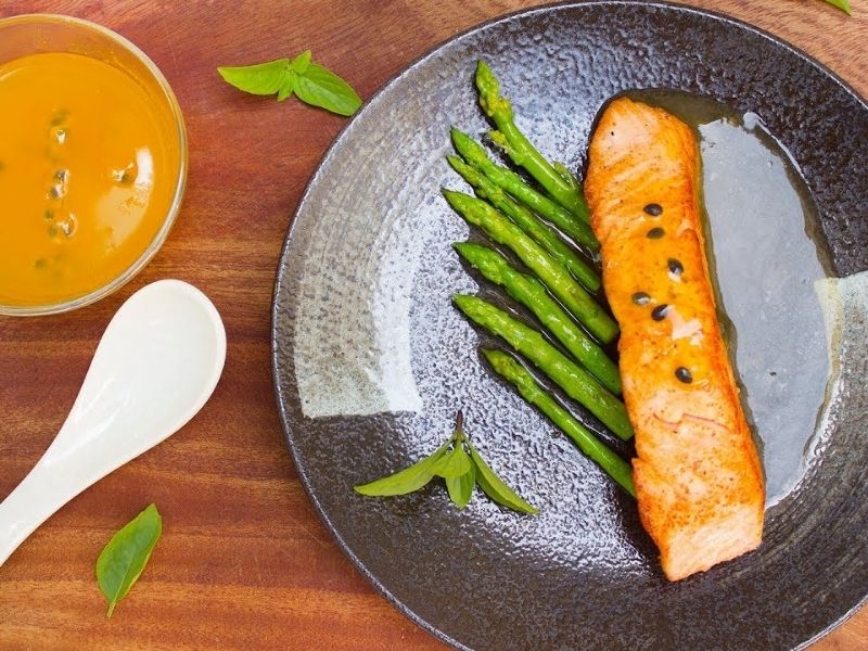 Thịt cá hồi ngọt, mềm thơm kết hợp cùng chút chua chua của sốt cam cực đưa cơm, thêm chút măng tây tươi, giòn là sự kết hợp cực kỳ hoàn hảo, từ trẻ em đến người lớn ai cũng thích.