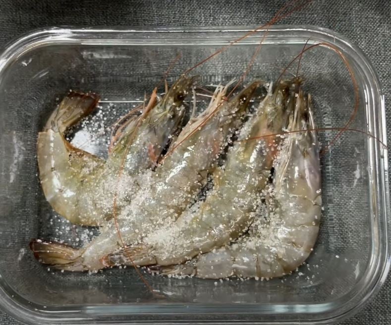 Sử Dụng Nước Muối Loãng: Ngâm tôm trong nước muối loãng khoảng 10-15 phút. Nước muối giúp làm sạch và giảm mùi tanh của tôm.