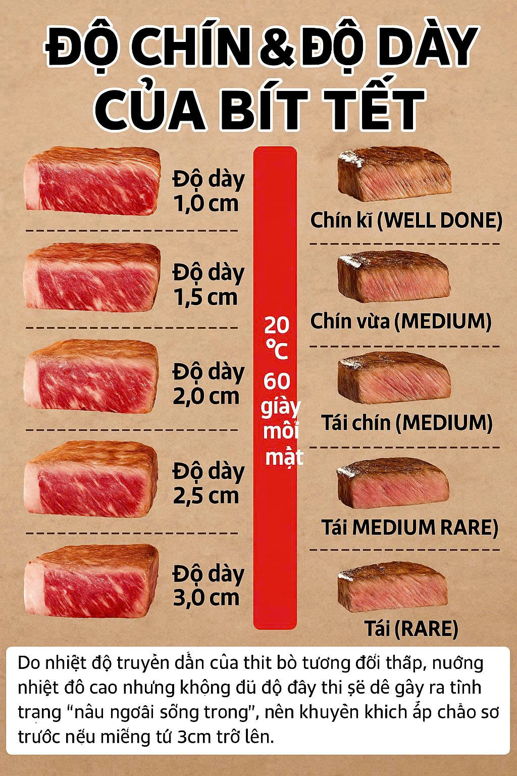 ✅ Các bước áp chảo bò đúng kỹ thuật: