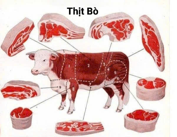 1. Thịt Bò – 9 phần cắt phổ biến