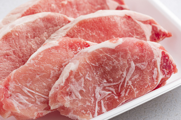 Khi cấp đông, nước trong thớ thịt kết tinh thành tinh thể băng.