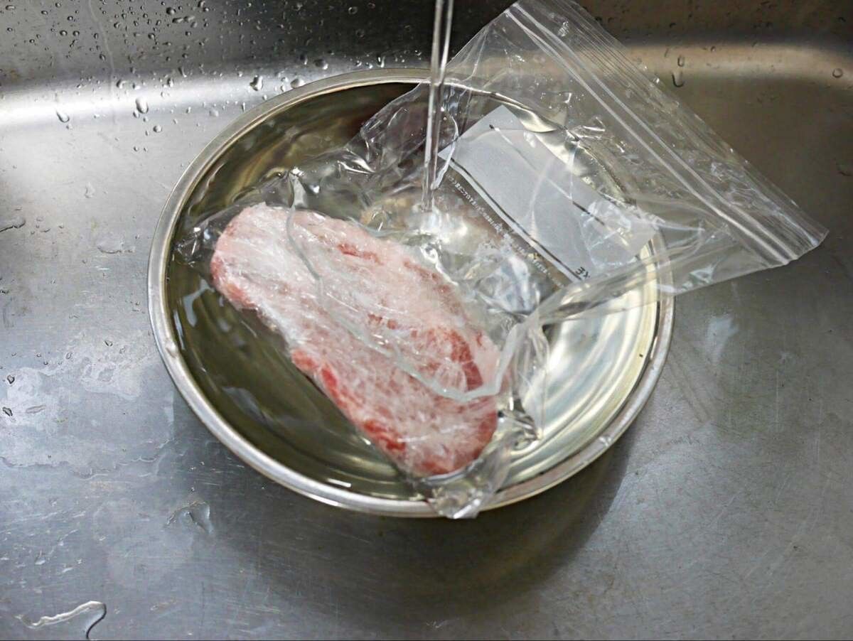 🥩 Cách 2: Rã đông nhanh bằng nước lạnh (Giải pháp “cứu nguy”)