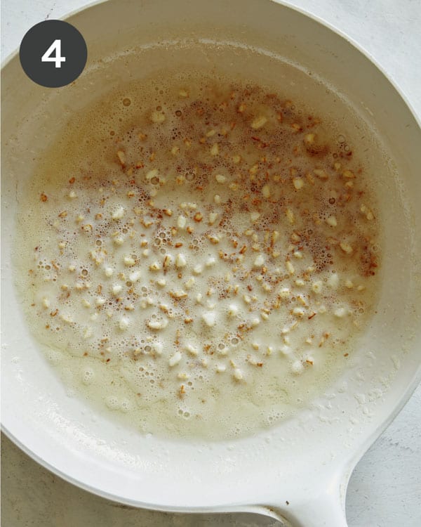 Trong lúc sườn nghỉ, làm sạch chảo, cho bơ vào đun chảy, thêm tỏi băm còn lại vào xào thơm.